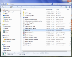 Once the ZIP file has been download, extract the contents. The image to the right shows example content of the extracted files. Double click on the Xpresso.exe file (highlighted in the image) to launch XPRESSO.